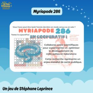 📝 Collaborez entre scientifiques pour expérimenter et optimiser le développement de mille-pattes en laboratoire en version coopérative (existe version solo et compétitive). ✨ Présent dès la première édition, Stéphane est de retour cette année ! 🗓️ Présence de l’auteur : Les deux jours Venez le rencontrer, tester ses jeux et poser toutes vos questions sur […]