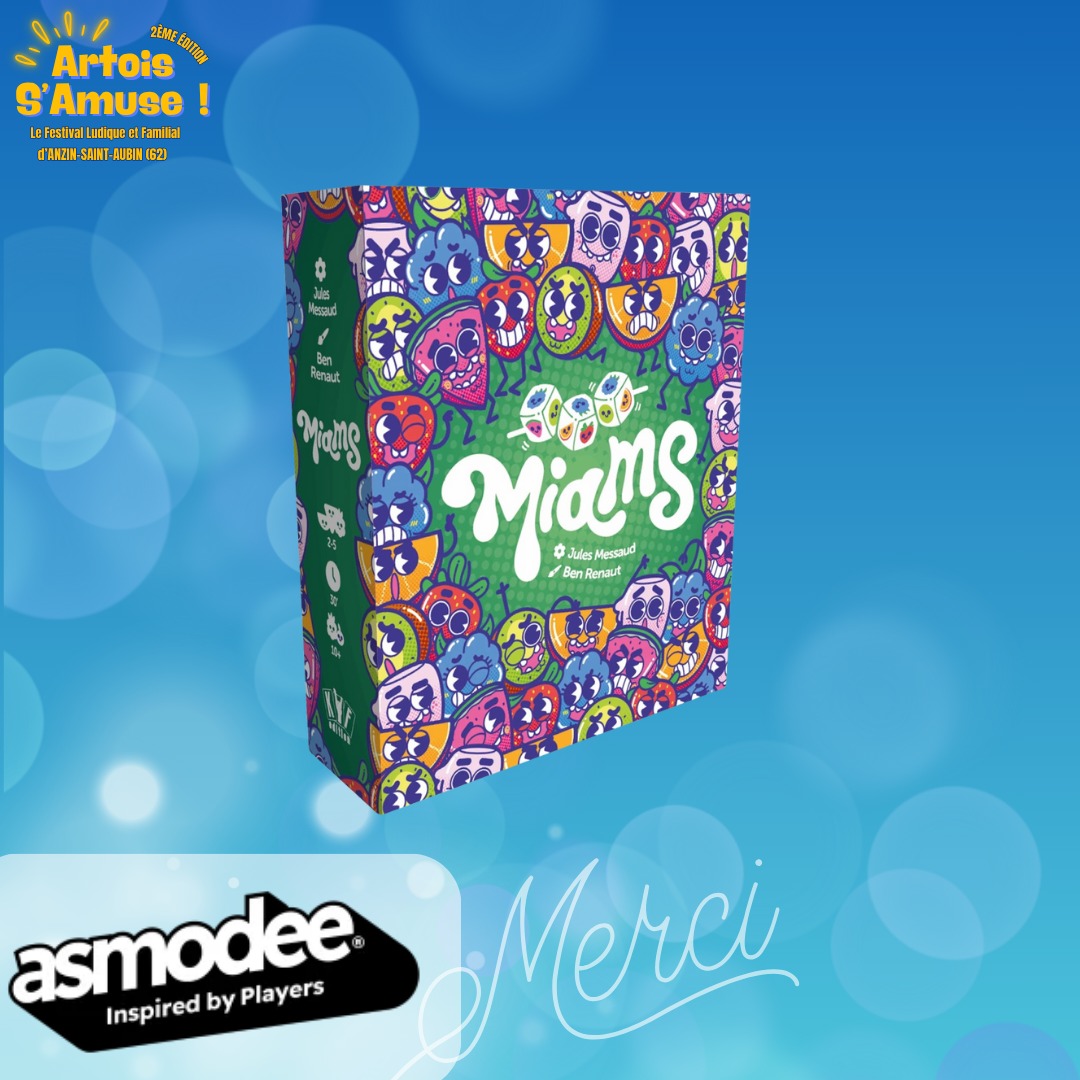 Miams est un jeu de dés survitaminé pour toute la famille dès 10 ans. Lancez vos dés, composez des combinaisons de fruits (paire, brelan, full, carré, suite ou miams), puis cochez les cases de votre feuille pour marquer des points et des bonus.